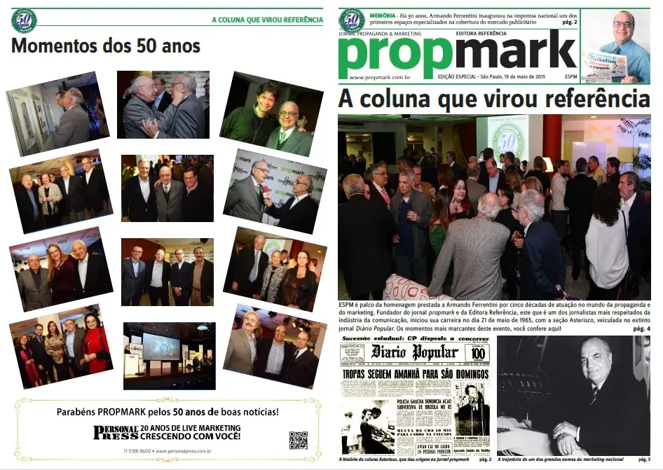 Idealizado pela ESPM e pelo Instituto Cultural ESPM, o evento celebrou os 50 anos de carreira de Armando Ferrentini, jornalista, empresário e fundador do PropMark, um dos nomes mais influentes da história do jornalismo publicitário brasileiro.