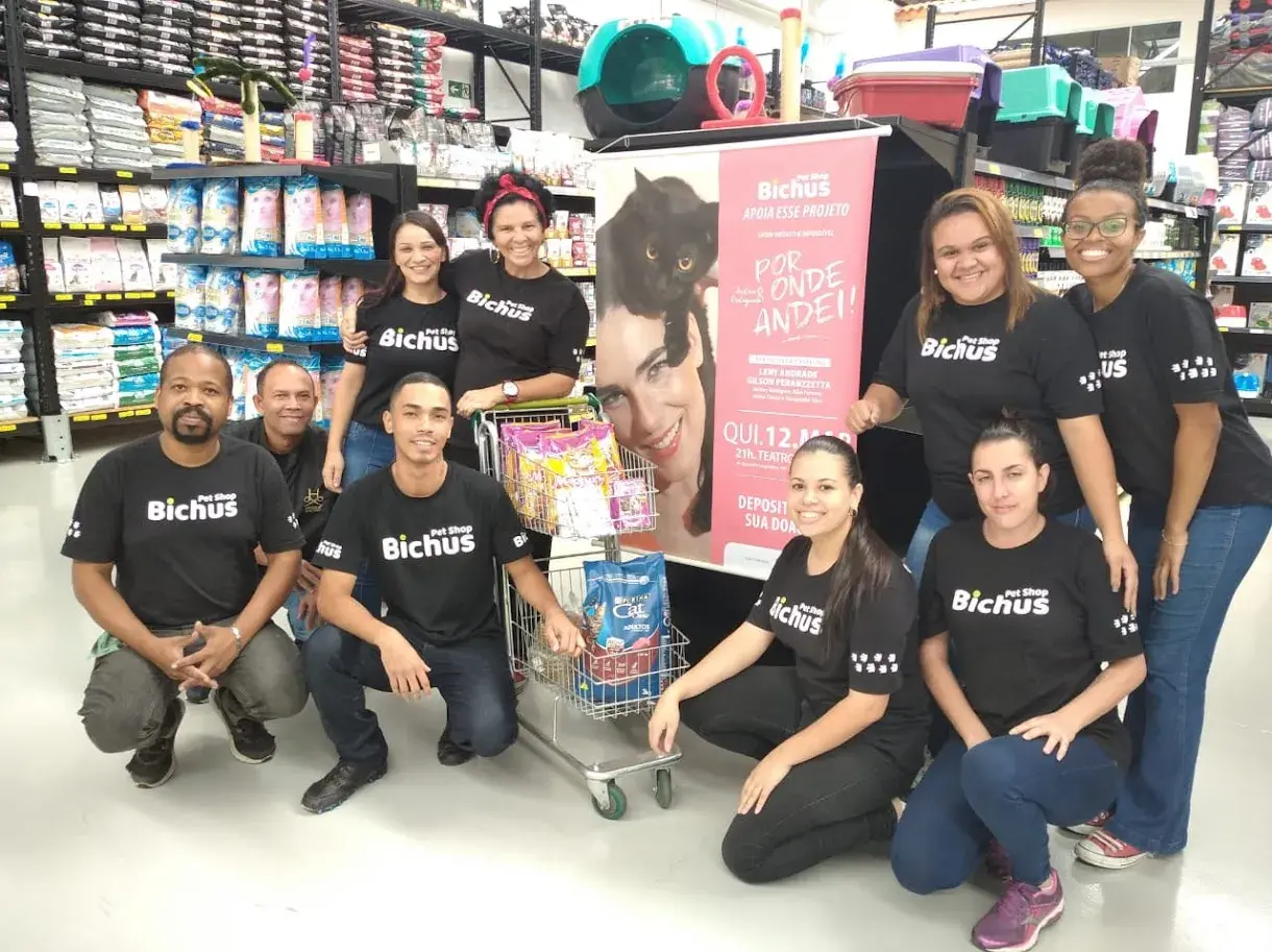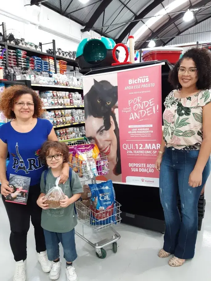 Neste mesmo espetáculo, firmamos uma negociação especial de apoio com a loja Bichus, que ofereceu descontos nos ingressos e ampliou a experiência do público com ações de ativação. Distribuímos máscaras de gato, criamos momentos instagramáveis e realizamos um flash mob surpresa, que encantou a plateia e impulsionou a coleta de itens para os bichinhos, além de contribuir para o aumento das vendas de ingressos.